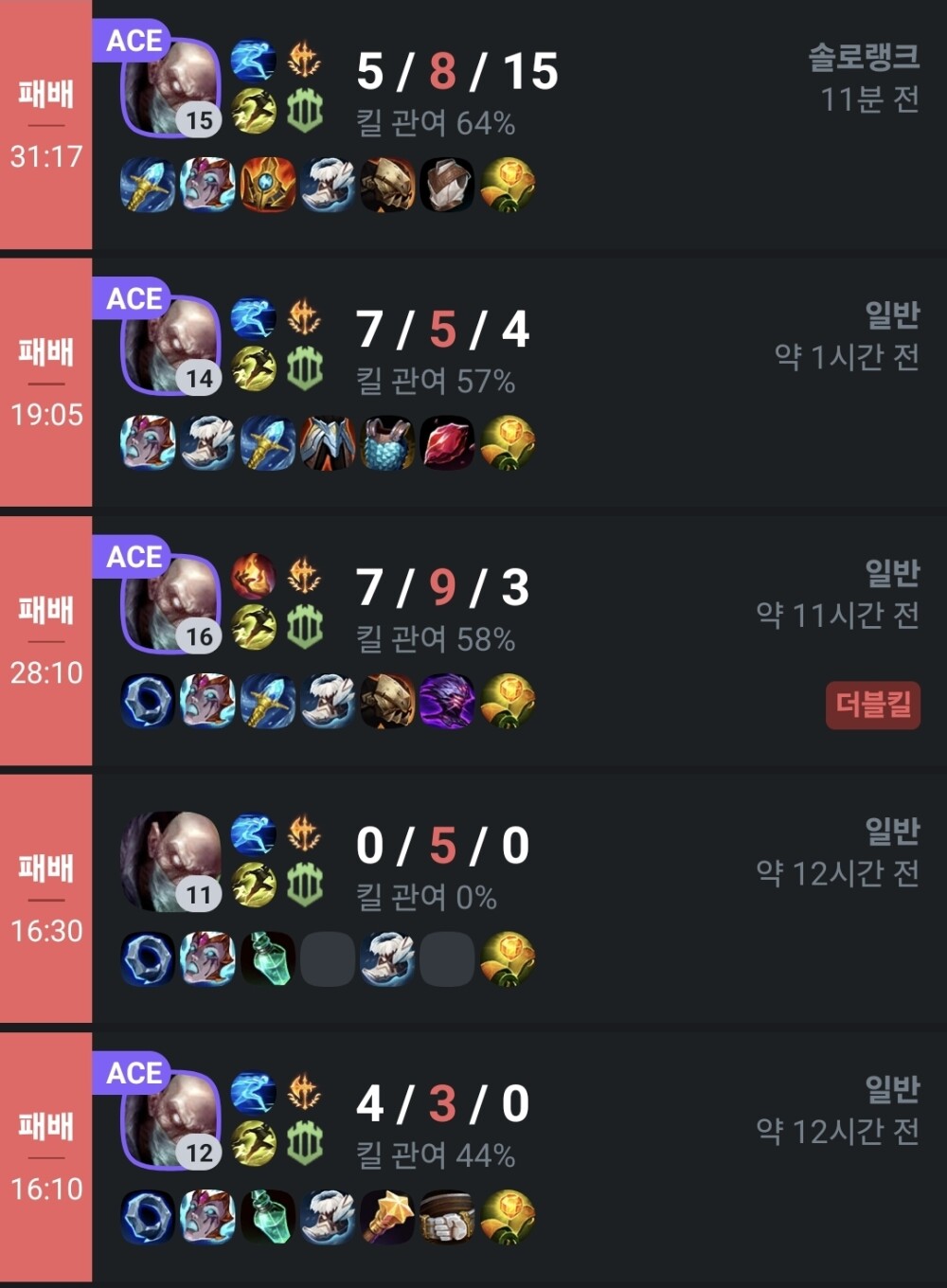 5연패 에이스 4번이라니...