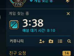 예상대기시간이 8분 ㅋㅋㅋㅋ 게임 진짜 망했네 천상계 매칭은 커녕 천상계 언저리도 아니라고