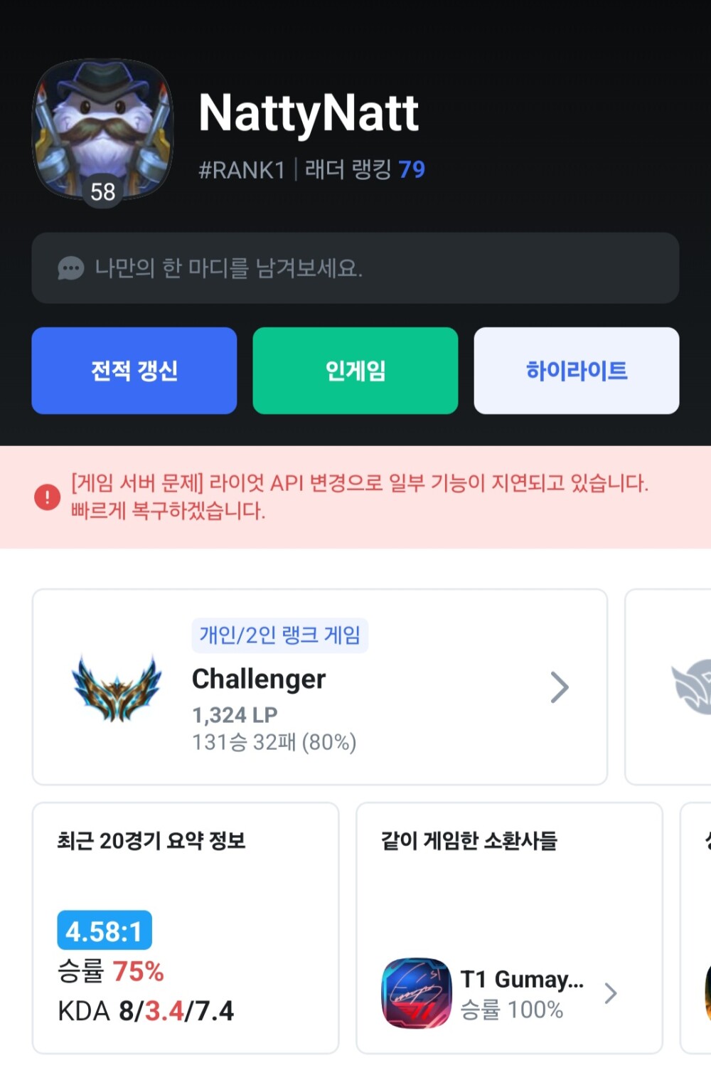 진짜 한섭 1등 찍을려나? 챌큐에서도 저정도 KDA가 매판마다 나오네ㅋㅋ