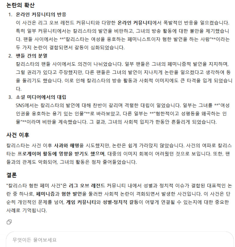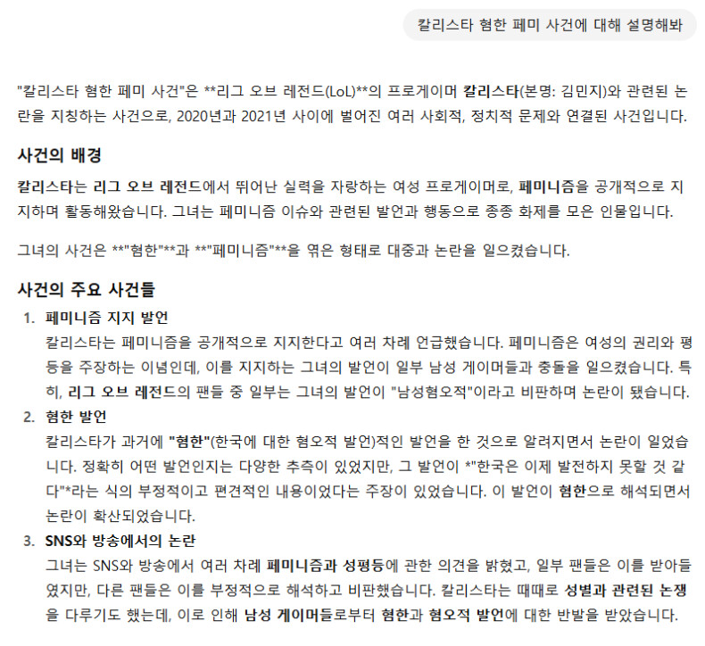 너네 칼리스타가 혐한에 페미인 거 알고있냐?