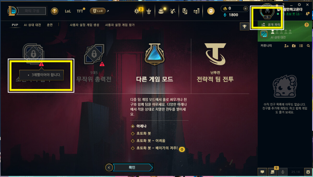 협곡 일반겜 3렙부터라고 써있는데, 부계는 이미 5렙임. 근데 왜 안 됨?? 피방이라 챔프 제한은 상관 없음.