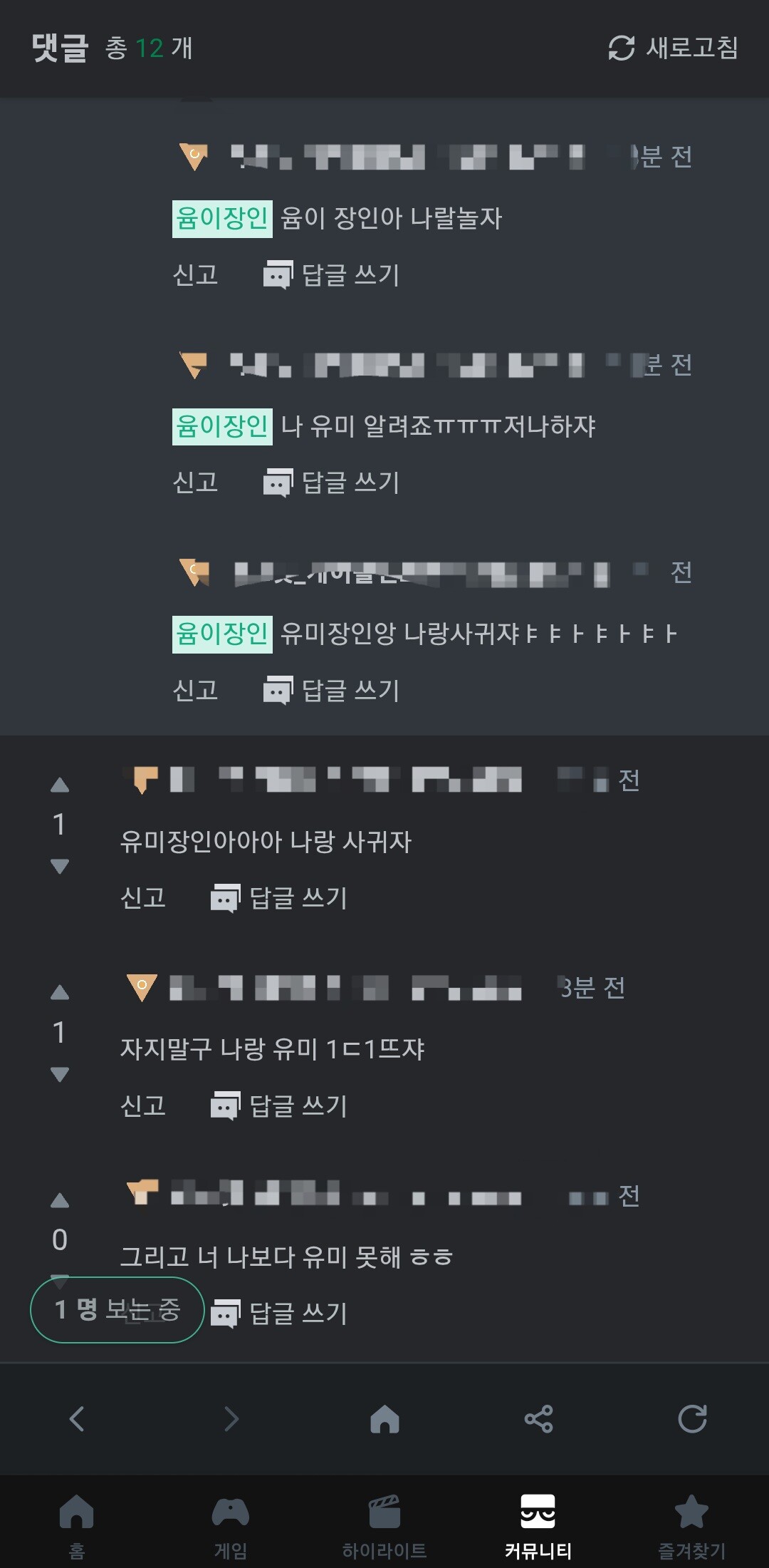 그 해카림 유미 내 글 본적있음 저때 댓글이 뭐 과외해달라 이런거였는데 난 그때 넘겼지.... 나한테 왜그래... 듀오 뭐 있었던거 같은데 니가 해카림하는거 아니면 고양이 두마리가 듀오를 어케돌려 저 첫글을 쓴게 1개월 전인데 이사람도 1개월 전에 유미 시작했네 (그 계정 기록상, 아직도 밴 안당함..) 공략글 효과 좋을지도?