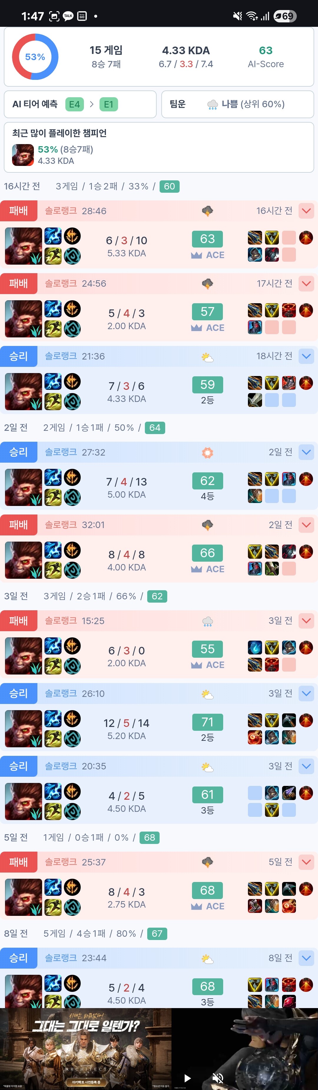 왜 지는판은 항상 똥꼬쇼하다가 지는거 같죠. 에매3~4무한지옥에 빠졌습니다. 지든 이기든 너무해요.