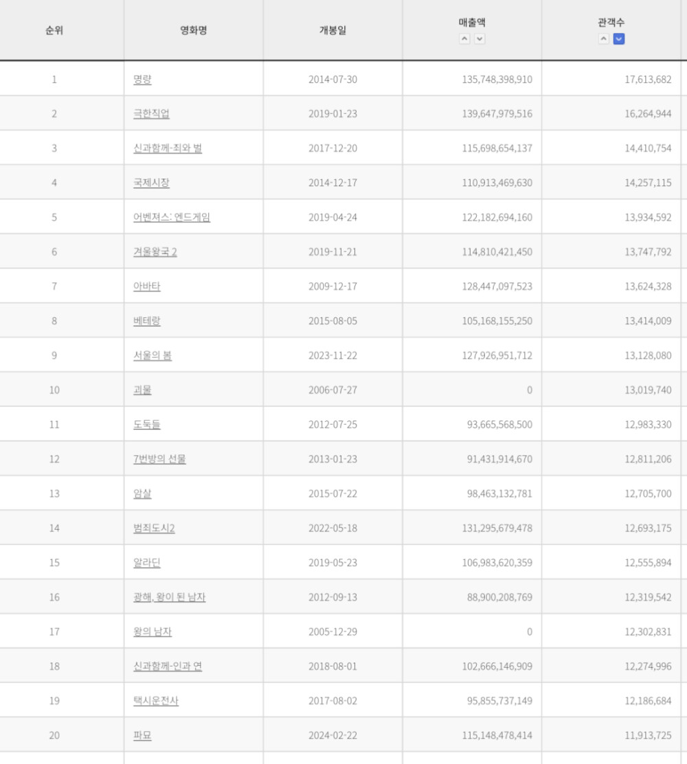 국내 영화도 겨울왕국 빼면 싹다 남자가 주인공인 영화가 수익이 가장 높음