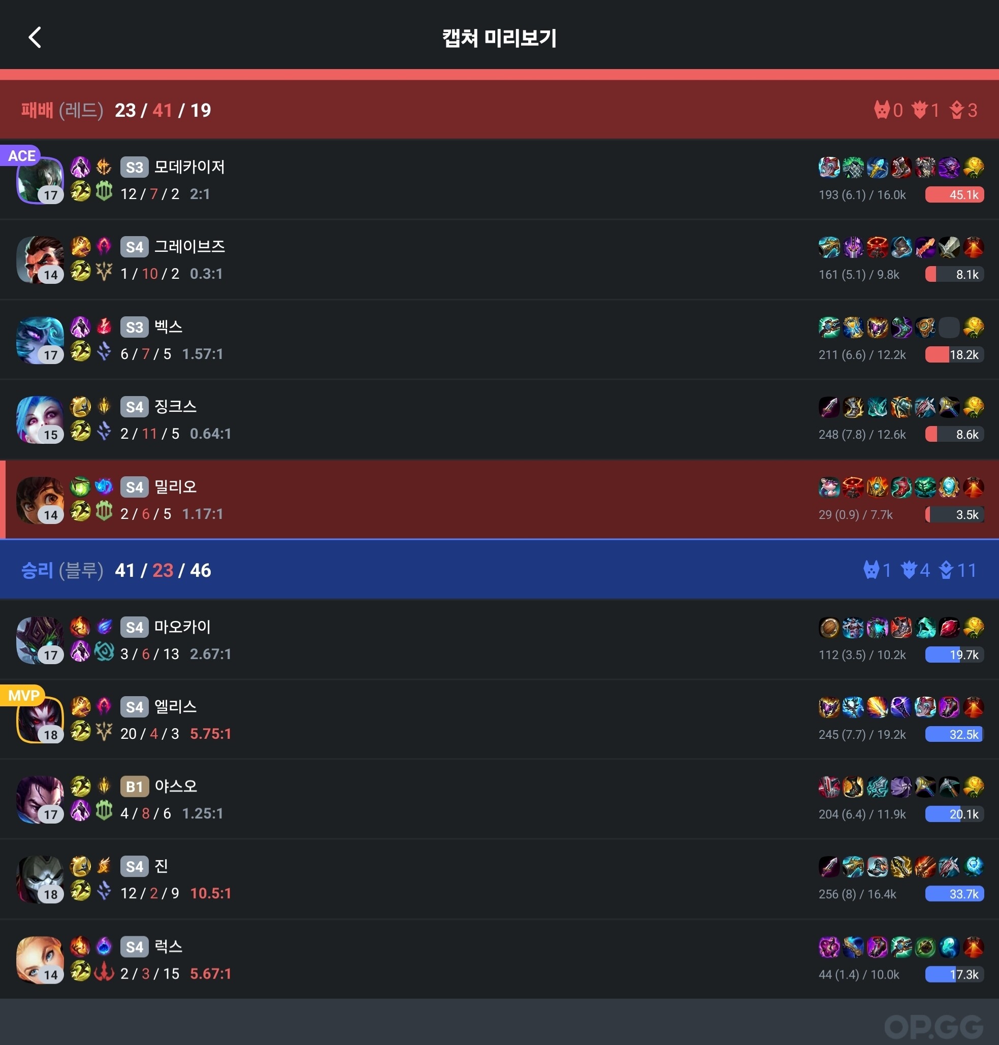 상대 엘리스 ㅈㄴ 잘해서 게임터뜨리고 다니는와중에 초반 다이브때 징크스 죽을거 살리고 엘리스 역킬따고 지고있는게임에 밀리오가 럭스보다 와드 잘하고 다닌다고 엘리스가 친추와서 3판 버스태워줌 ㄷㄷ 본캐 그마라더라..oddin_n_roong_02