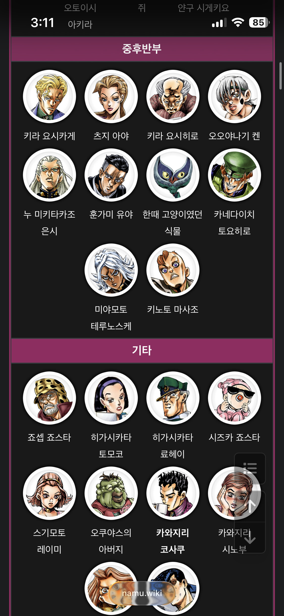 코사쿠는 이름이 밑줄쳐지며 프로필이 진짜 코사쿠가 되어 깨져있는데…