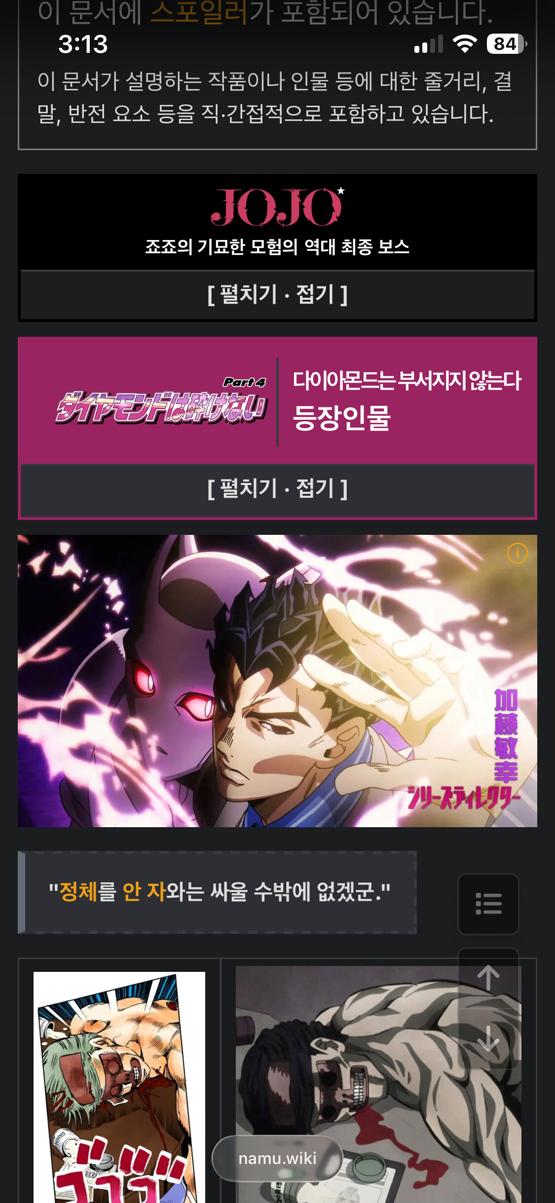 진짜 정체가 나타난 후 문서가 바뀌는 나무위키 속 디테일이었다~