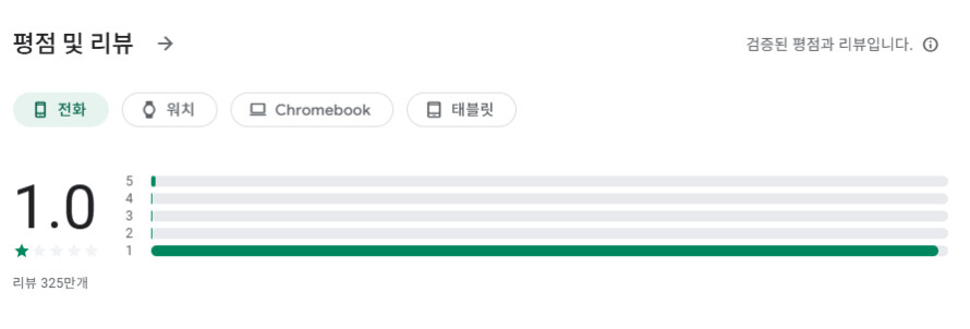 카카오톡 평점 아직도 1.0 찍히는중