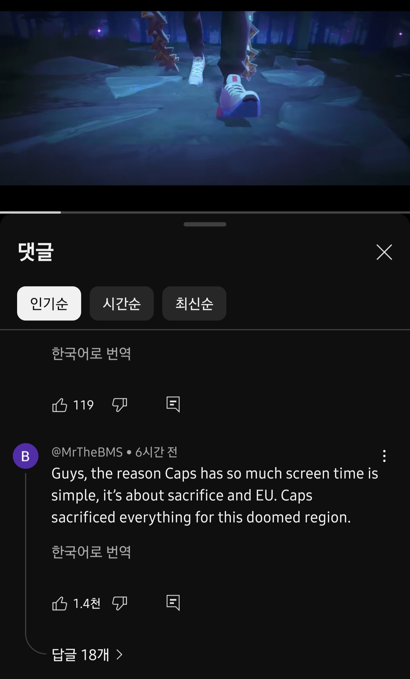 해석: 여러분, 캡스가 스크린 타임이 많은 이유는 간단합니다. 희생과 EU.캡스는 이 불운한 지역을 위해 모든 것을 희생했습니다.