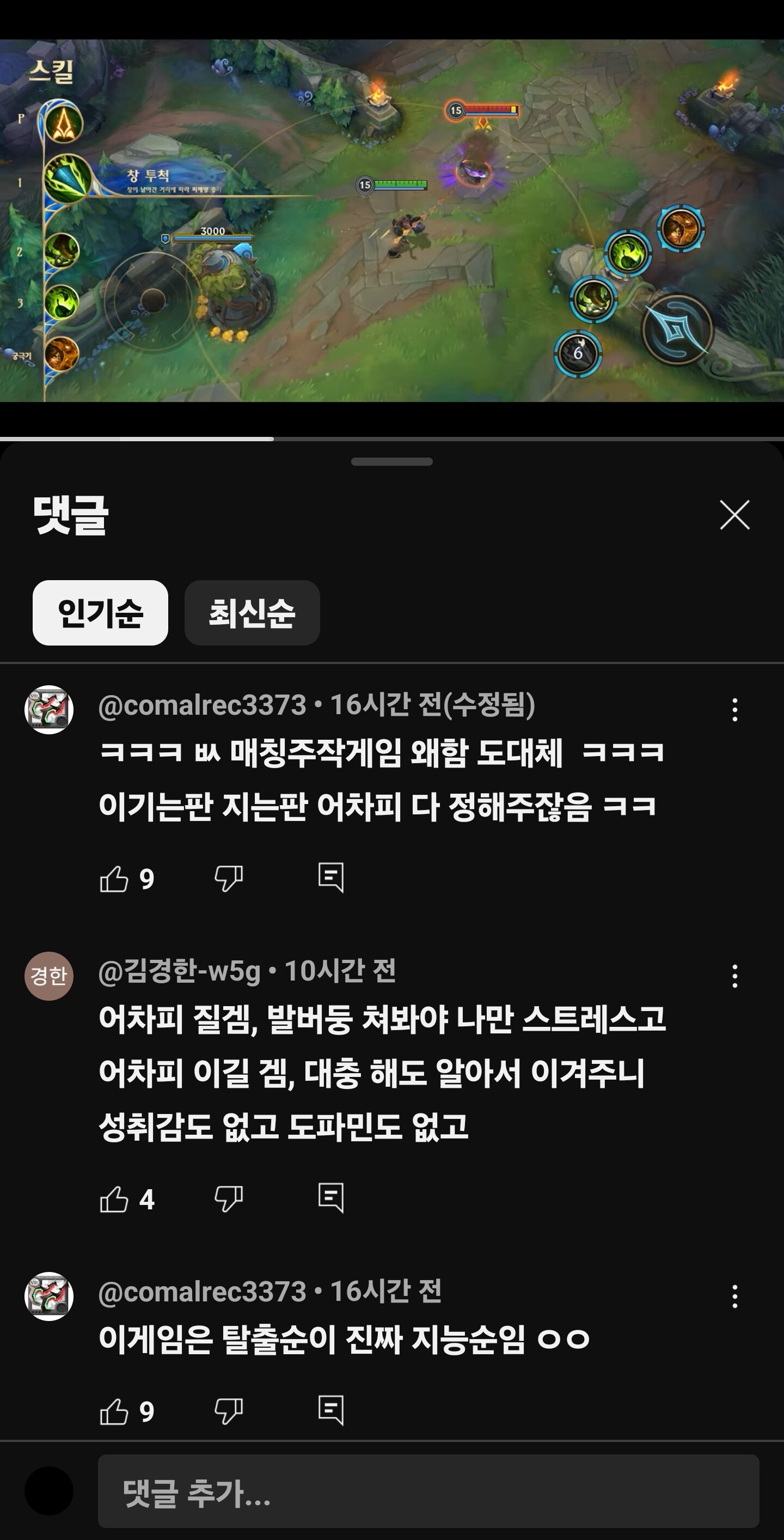 굳이 롤 영상 쳐와서 롤탈출은 지능순이다 이딴 게임 왜하냐