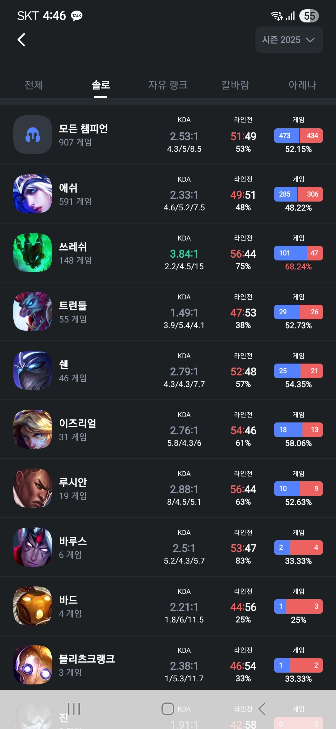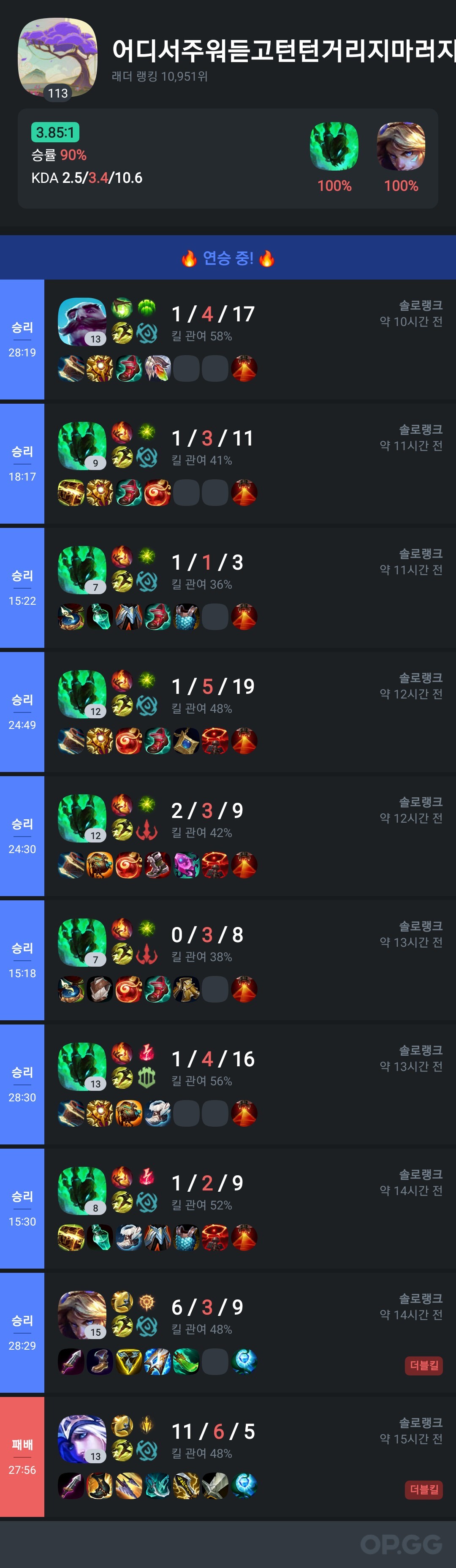 어제 파멸적으로 많이 이기긴 했네