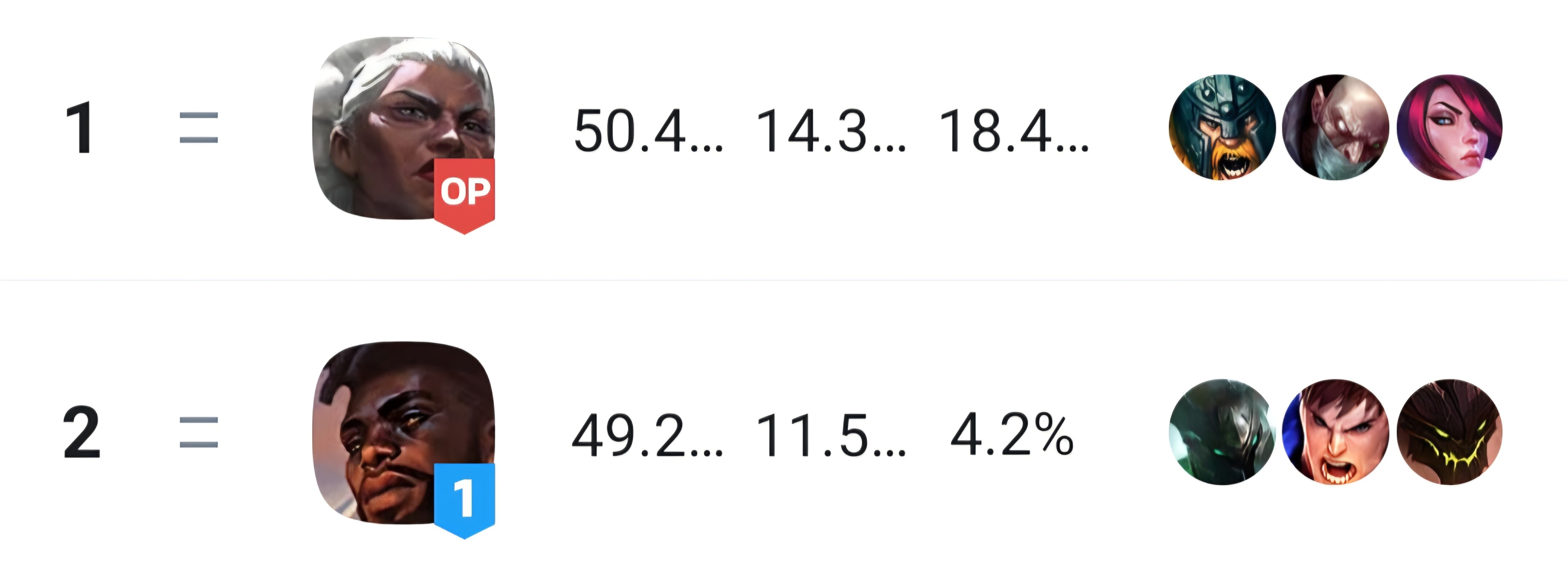 다이아~ 마스터+ 통계 선픽 고트 들이라 픽률 1 2 위 나란히 잡아먹는중 ㅋㅋ