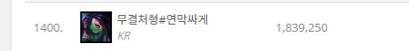전세계로 가면 1400등 됨 ㄷㄷ 해외 아창들 개많네