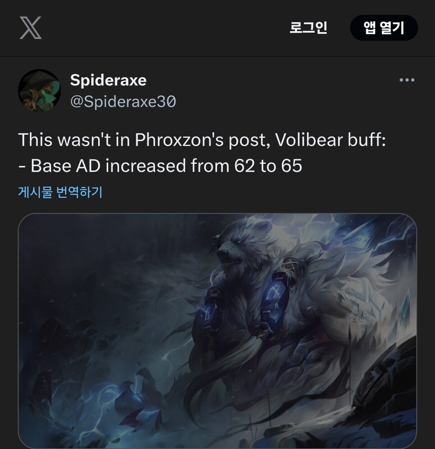 이것은 네가 알던 볼리베어가 아니다. 다리우스인지 미련곰탱이인지 트런들인지 자크인지 트린다미어인지 모를 기본AD3버프를먹으며돌아가신OyO교수님께서도무덤에서벌떡하고일어나게만들볼리베어의새로운패러다임이름하야리그오브프렐요드. 다음 패치 볼리베어를 만난다면 눈을 마주치기도 전에 도망가십시오. 그렇지 않으면 벨트를 가버린 곰이 당신을 찢으러 달려올 것입니다.