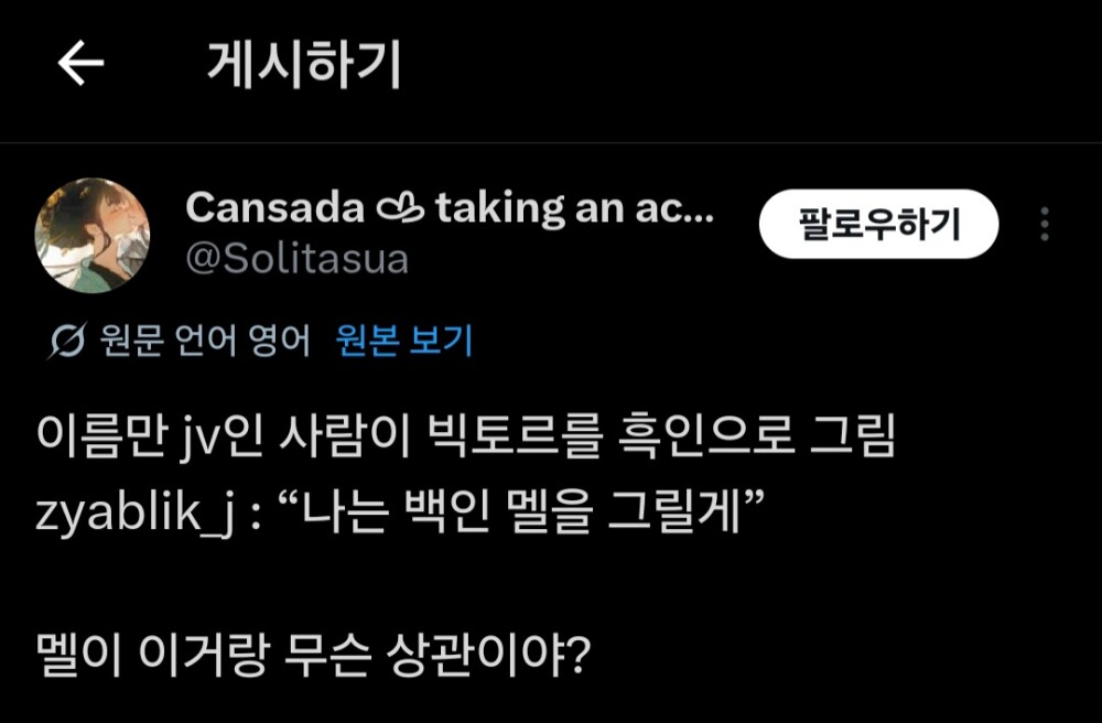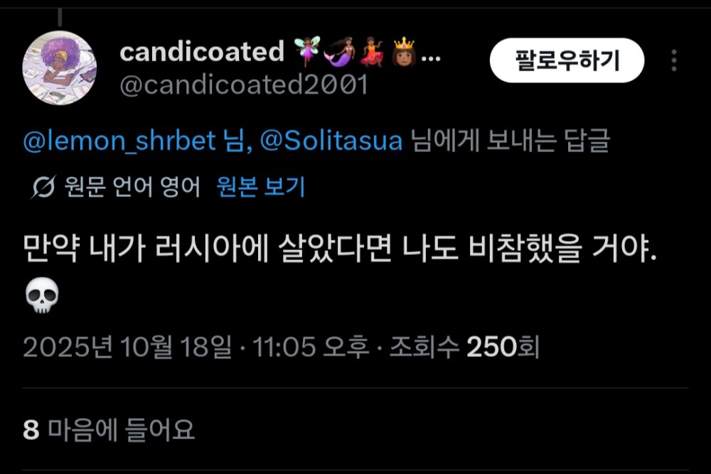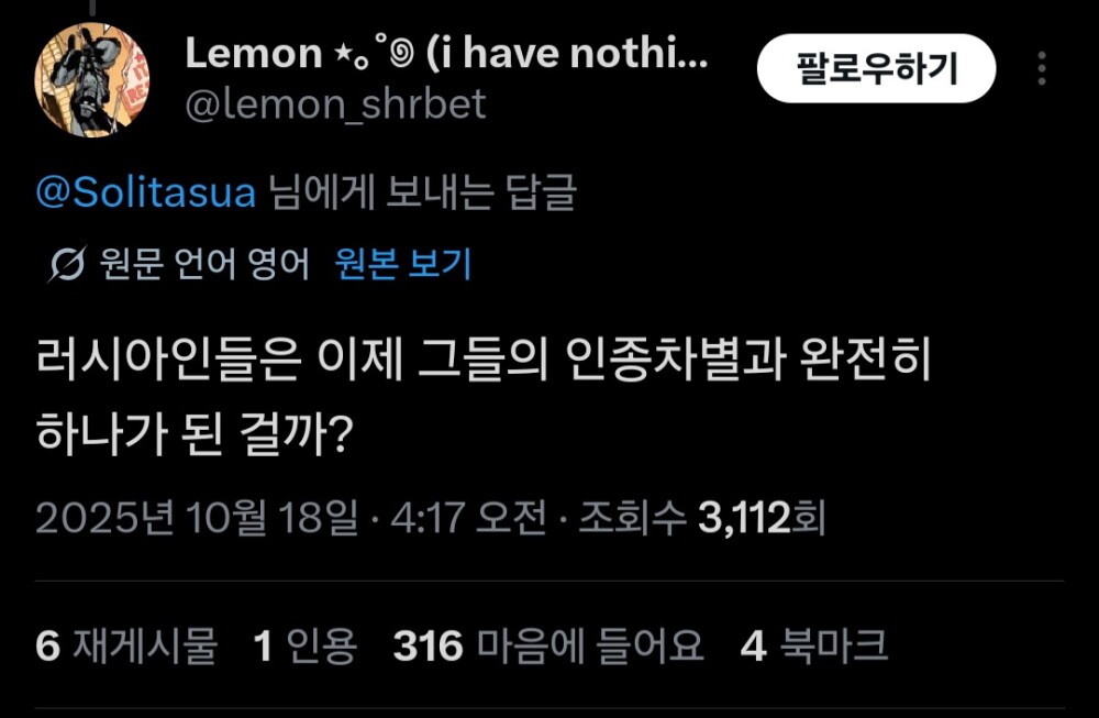 러시아사람이 '나도 멜 백인으로 그려볼게'라고 응수함