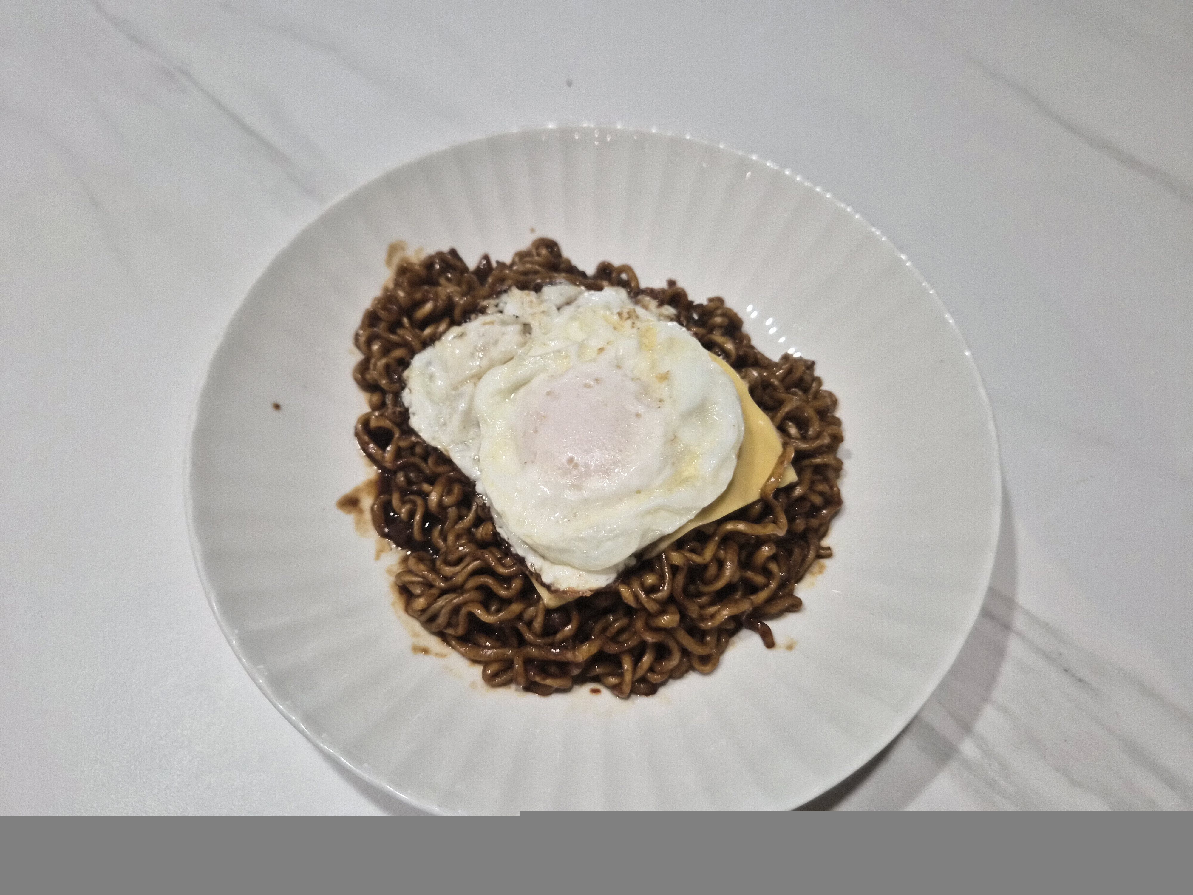 고추가루 팍팍넣어서 매콤하게 하고 계란후라이 반숙으로 넣어서 먹음