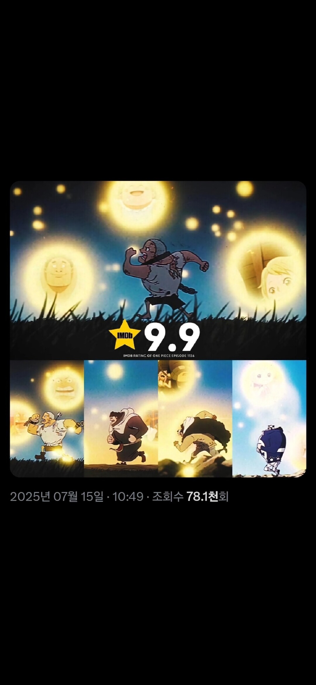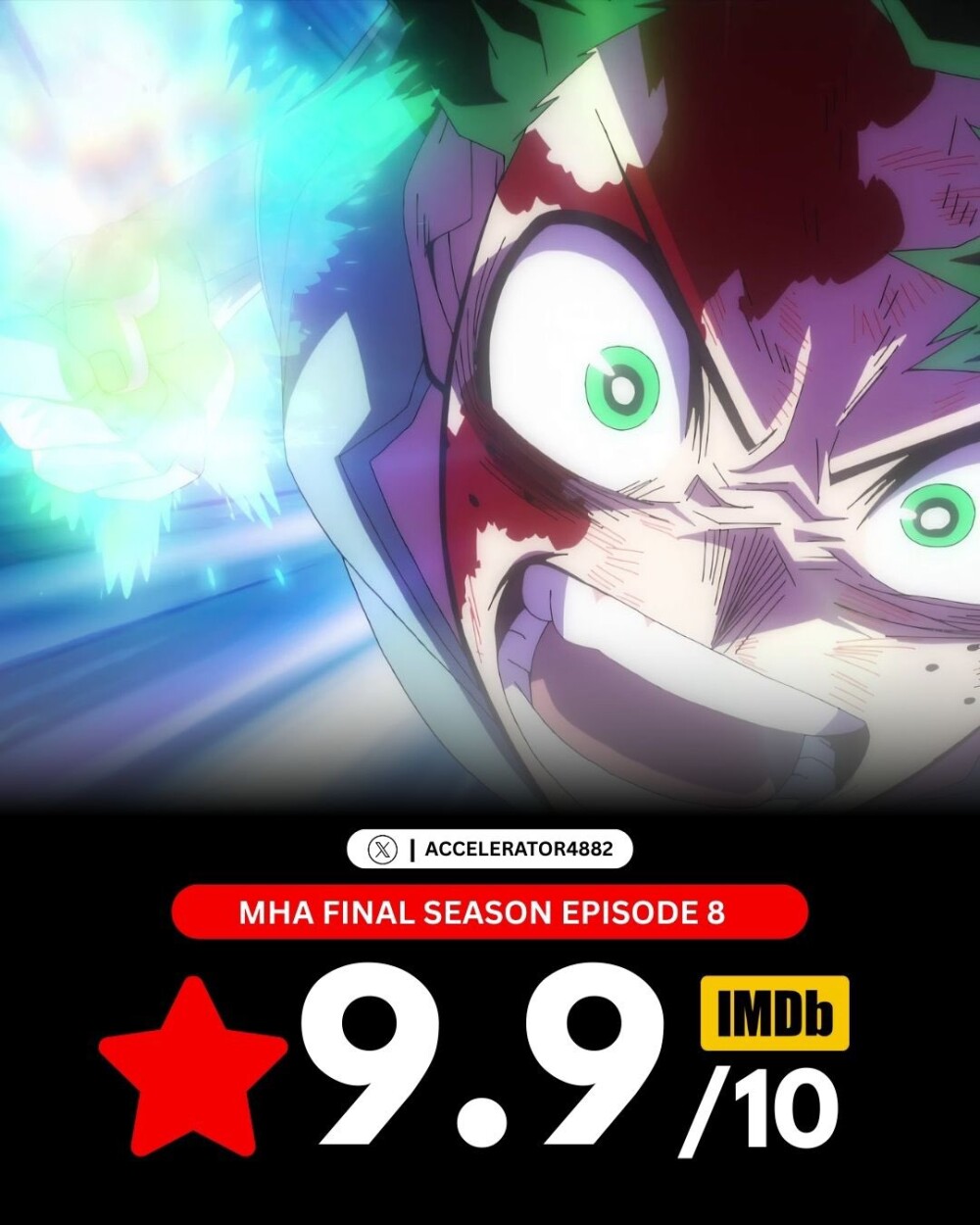 일단 이번 파이널 에피소드 imdb에서 무려 9.9점 이라는 별점을 남김 이게 얼마나 씹 대단한 거라면 9.8은 조금 있어도 9.9는 진짜 씹 몇 안되는 거임 이번 히로아카랑 같이 9.9점을 받은 에피소드는 원피스 1136화 나혼렙 시즌2 12화만이 유일함 진짜 나히아 6년전 부터 봤는데 뽕이 ㅈㄴ게 차오르다 못해 터질거 같다