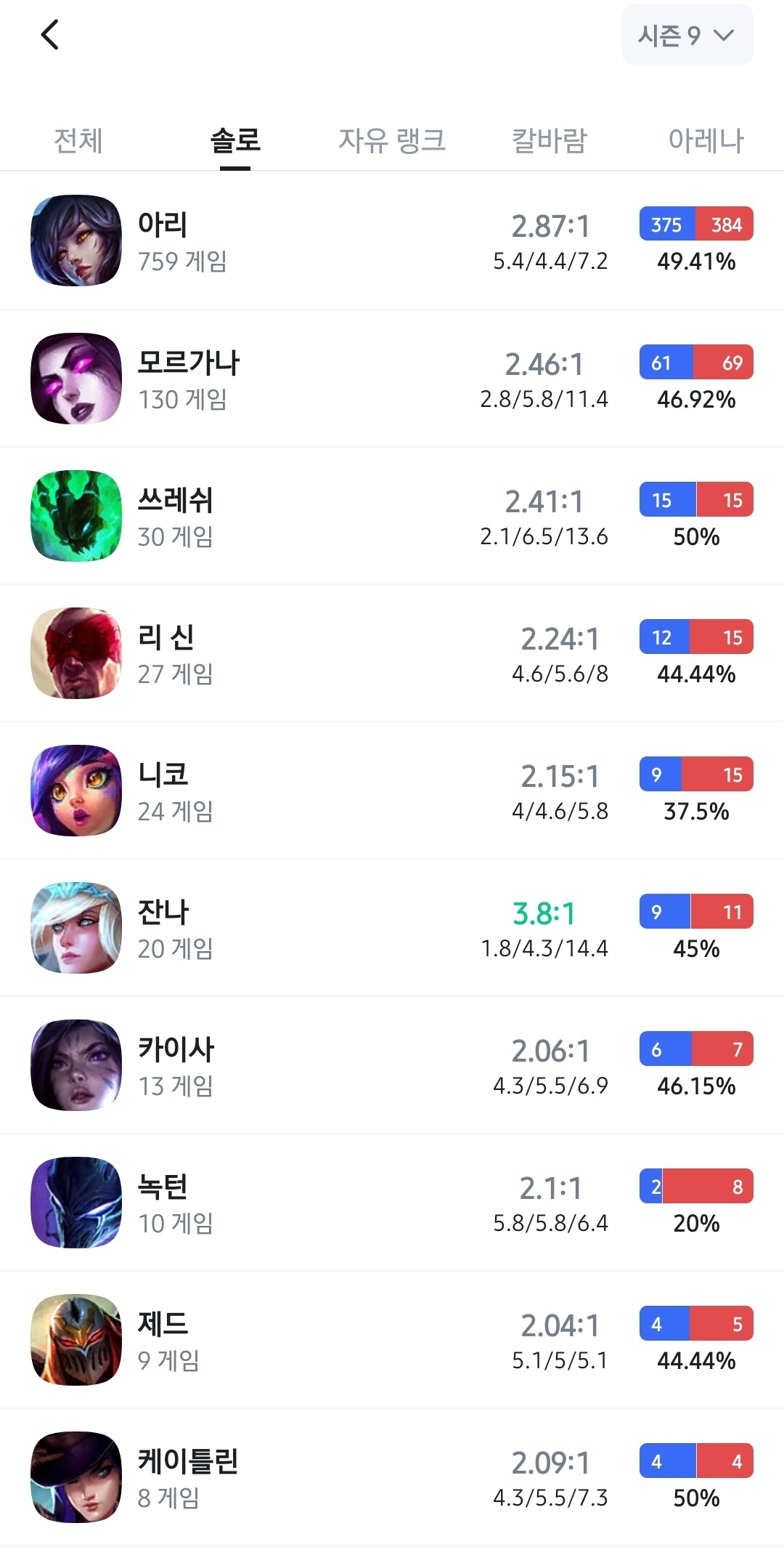 시즌 9에만 759판 쳐박았는데