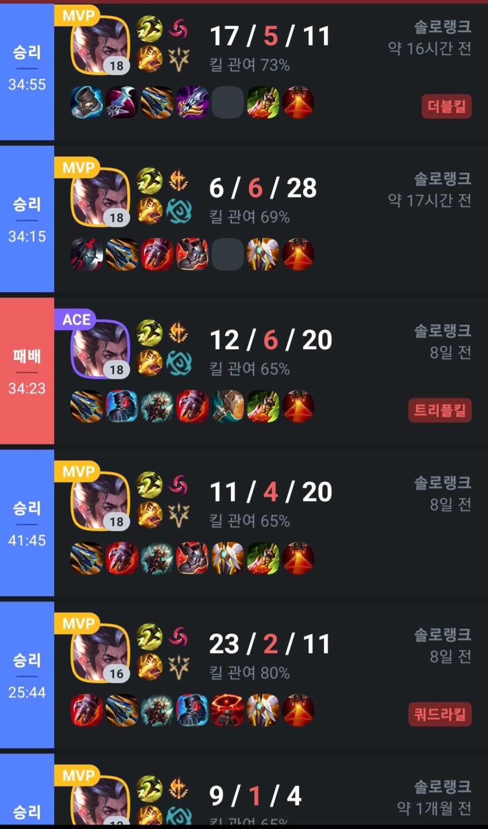 아무리 정글러가 겜 영향력이 크다지만 80퍼 이상이 ace거나 mvp인데 이게 맞음? 기울어진 협곡을 절실히 느낀다 이러곤 승률 50퍼를 간신히 넘겨야함