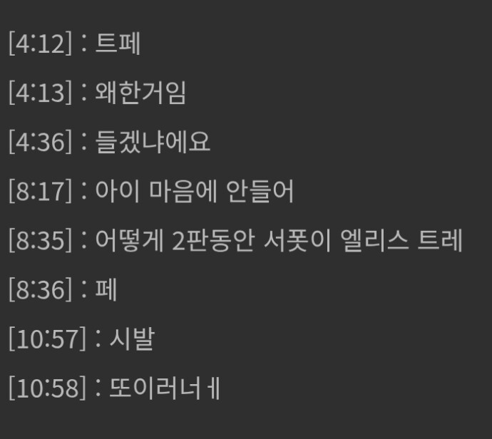 상황 설명 : 트페 서폿 픽하고 개못함 그래놓고 "알아서 견디세요^^" ㅇㅈㄹ함