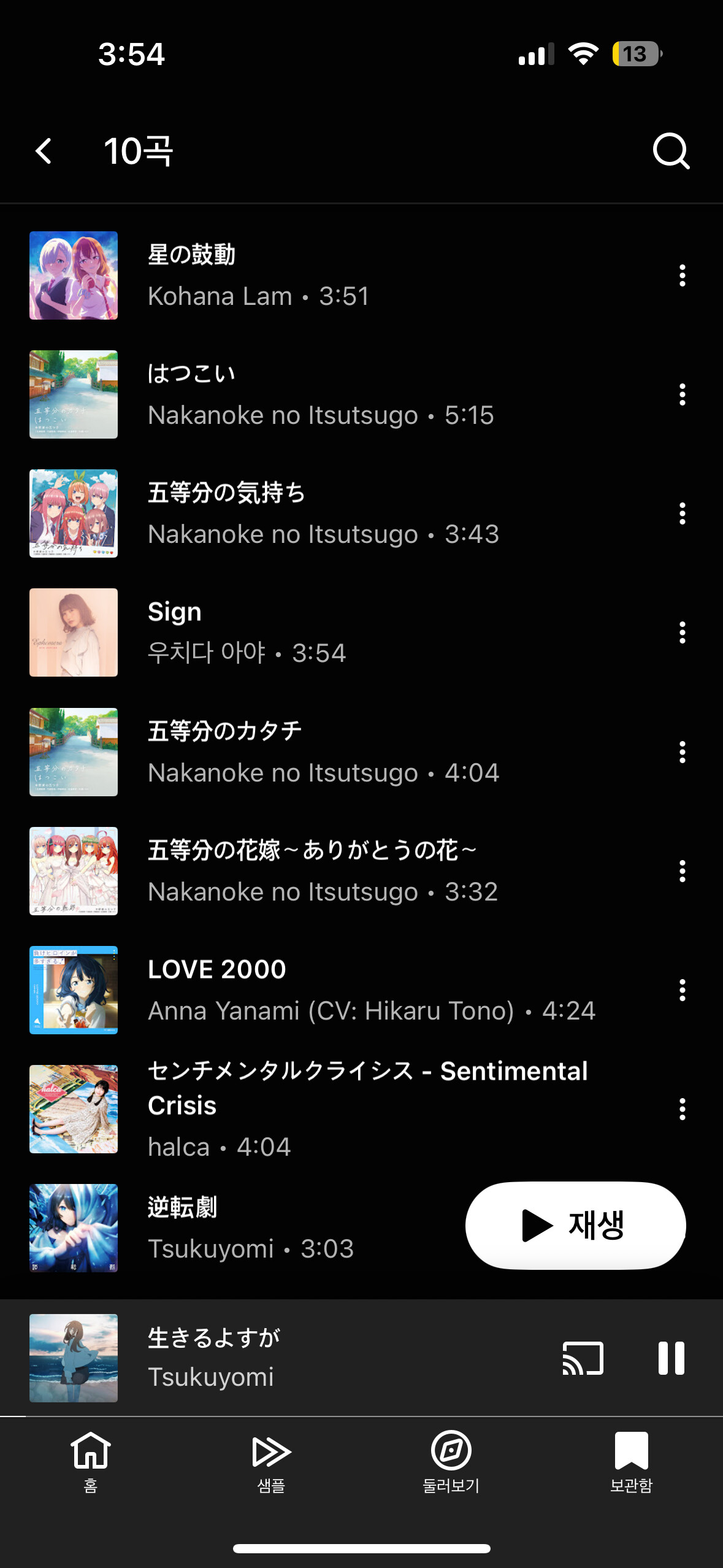 나는 10곡만 들을 수 있으면 이렇게 갈거임
