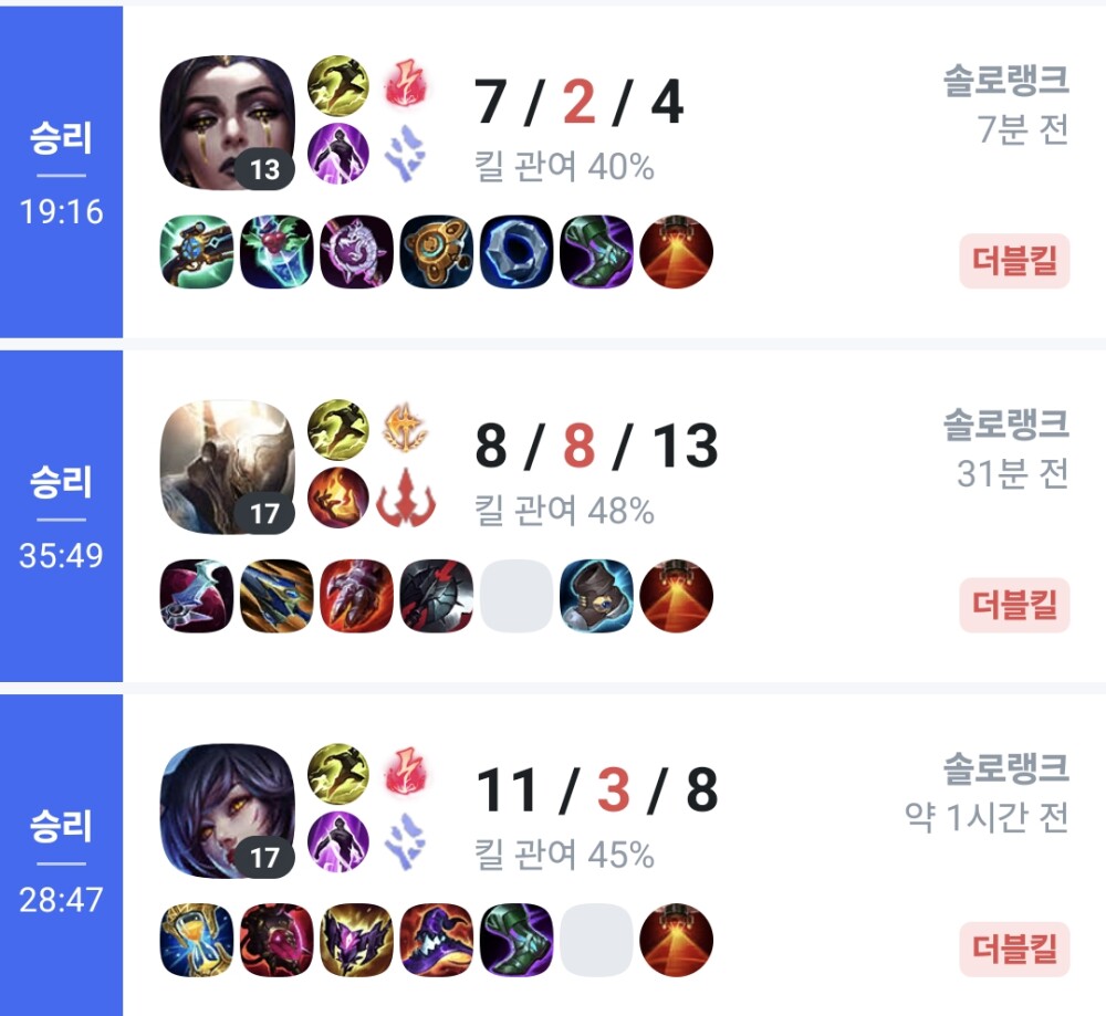 시험 망치고 빡쳐서 몇판 돌렸는데 왜 연승하냐고!!