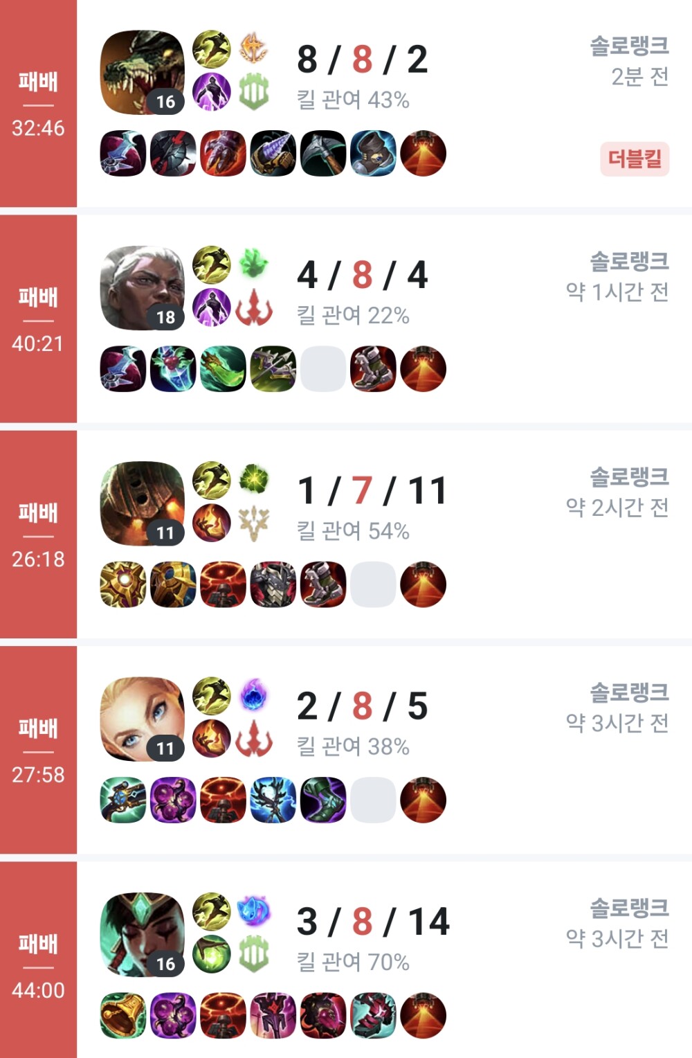 5판 모두 라인전을 이겼는데 다른데서 터져서 졌음 이런 젠장