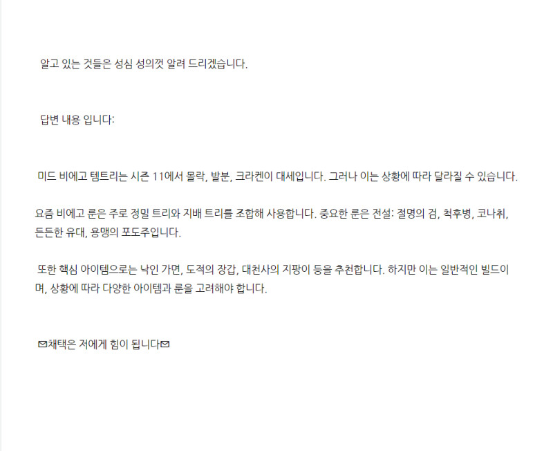 아무리봐도 사람이 썼다기엔 챗gpt 정보 잘못 입력되서 개소리 장문으로 하는거랑 똑같음 갑자기 시즌 11이랑 대천사가 왜나오누ㅋㅋ