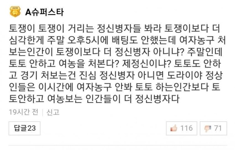 여자농구 보던 토쟁이의 일침 ㅋㅋㅋ