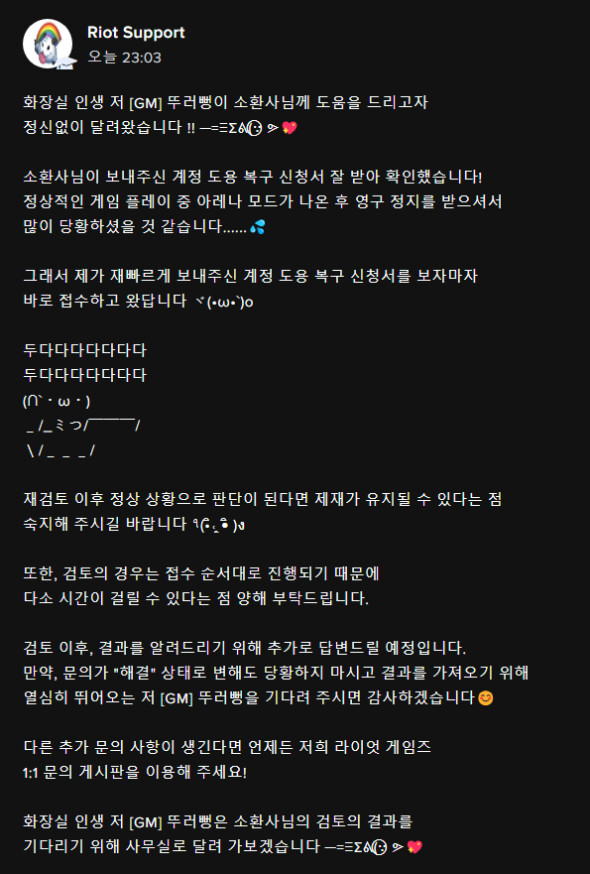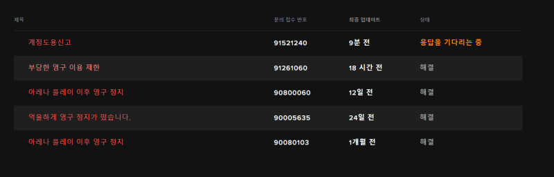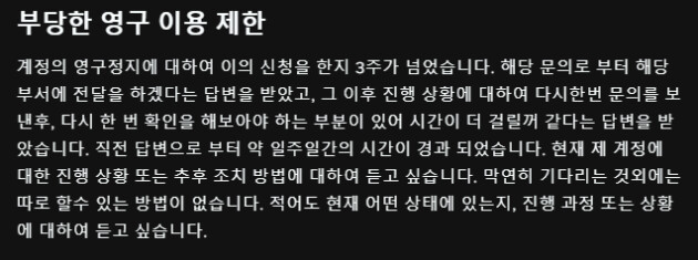 최초로 부당한 영구 이용 제한이라고 문의했을때