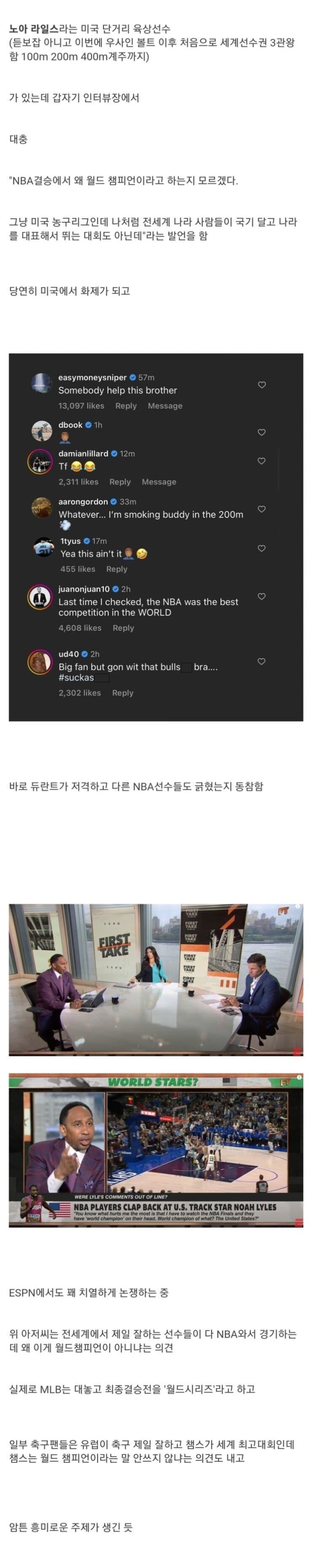 논란 일으켰다는 미국 단거리 육상선수의 발언