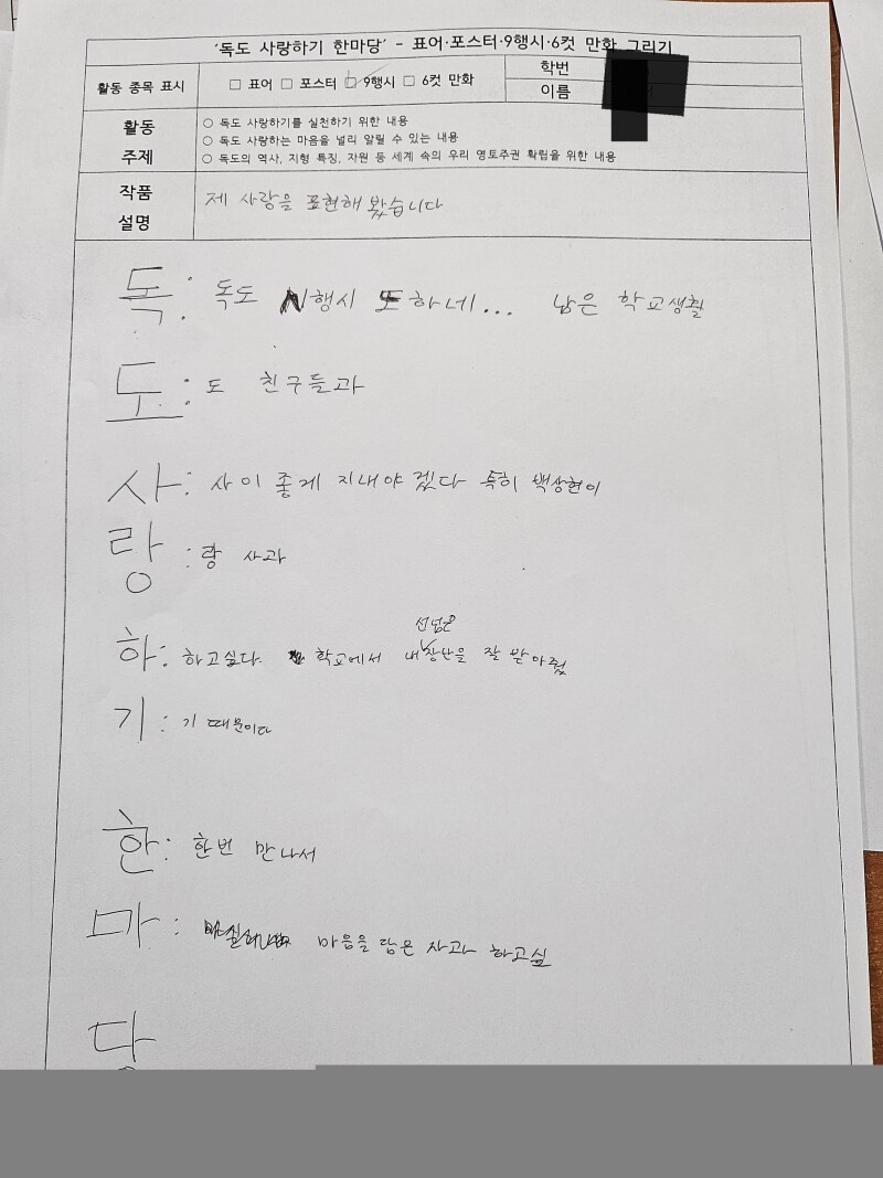 흔한 고1 옵붕이의 독도사랑 N행시;;