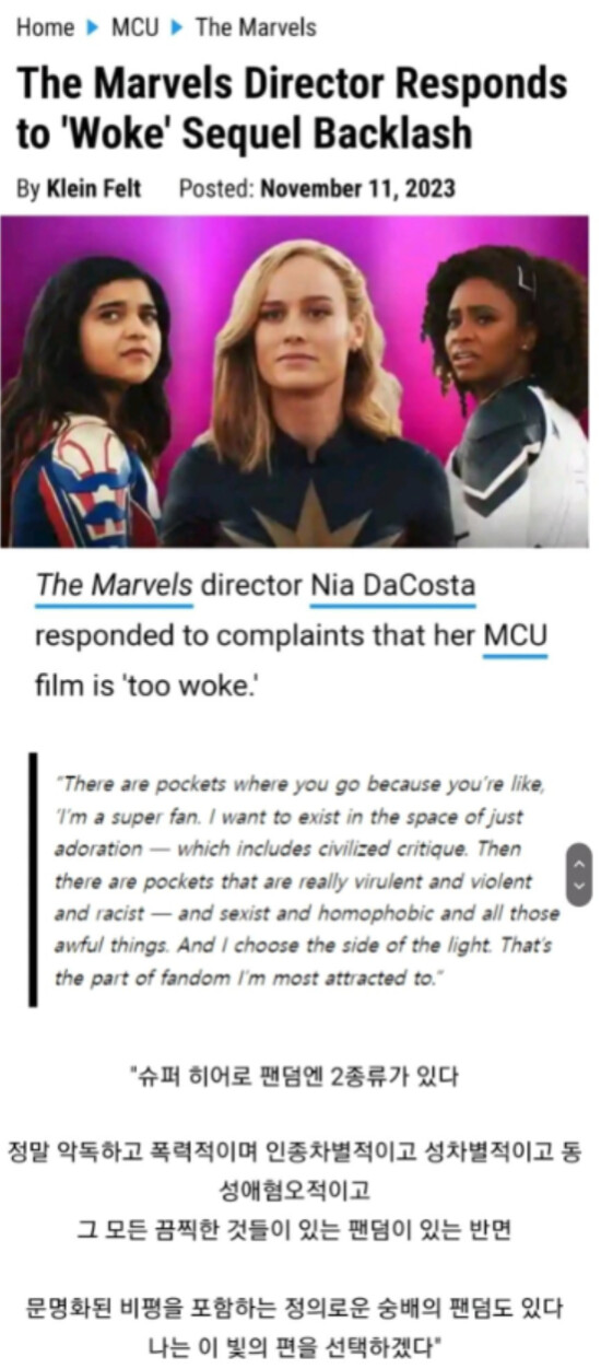 "더 마블스" 감독 셀프로 관짝에 못박음