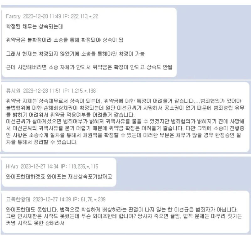 하지만 당사자가 죽어서 소송 자체가 힘듬 이선균의 범죄여부가 밝혀지면 귀책사유를 물어