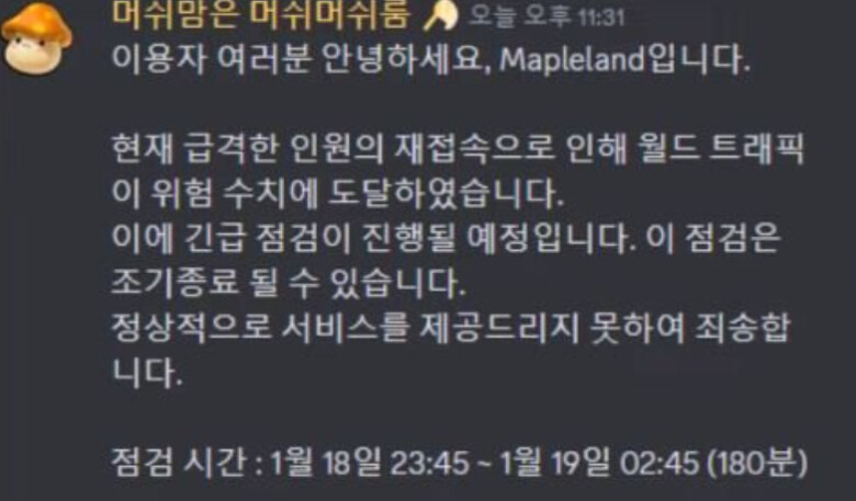 본인인증 시스템 도입 이후 다 복귀해서 트래픽 폭발