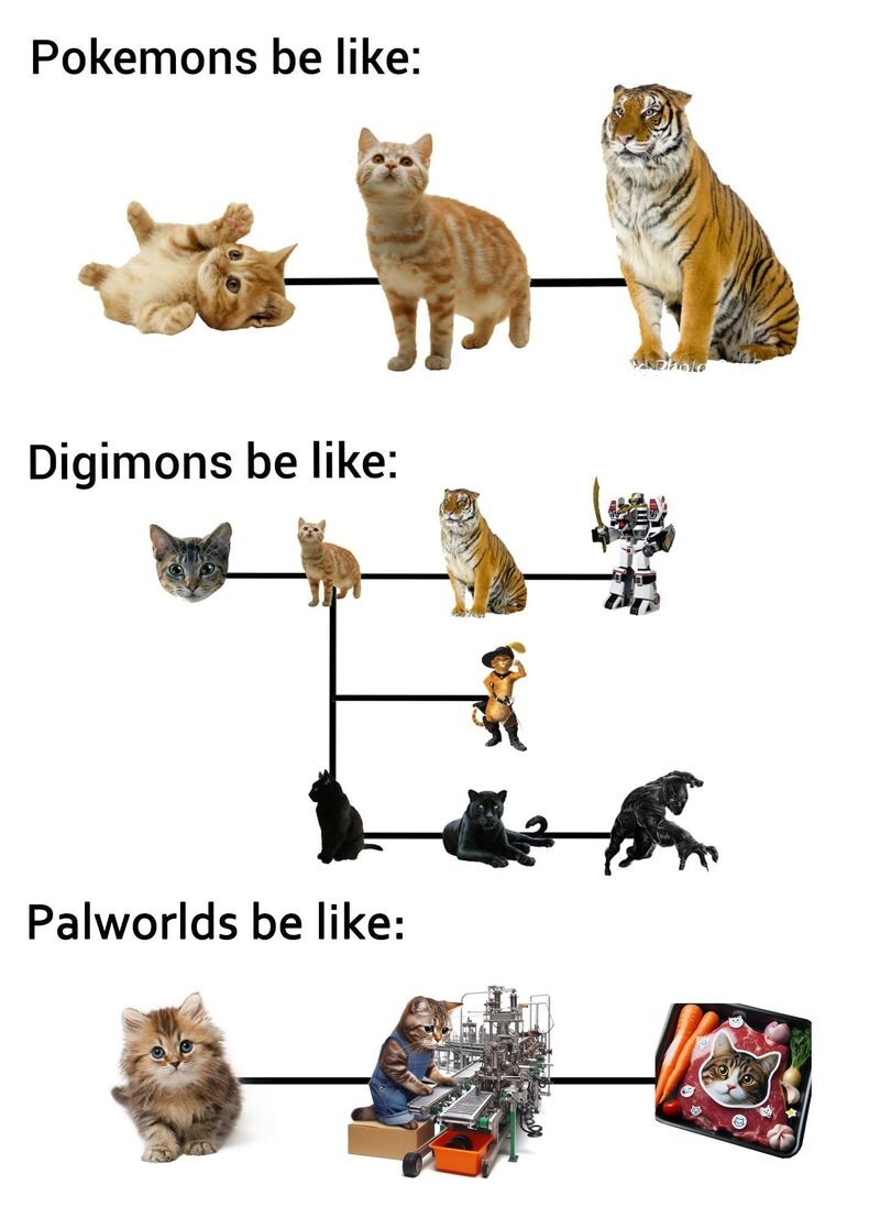 포켓몬 진화 vs 디지몬 진화 vs 팰월드 진화