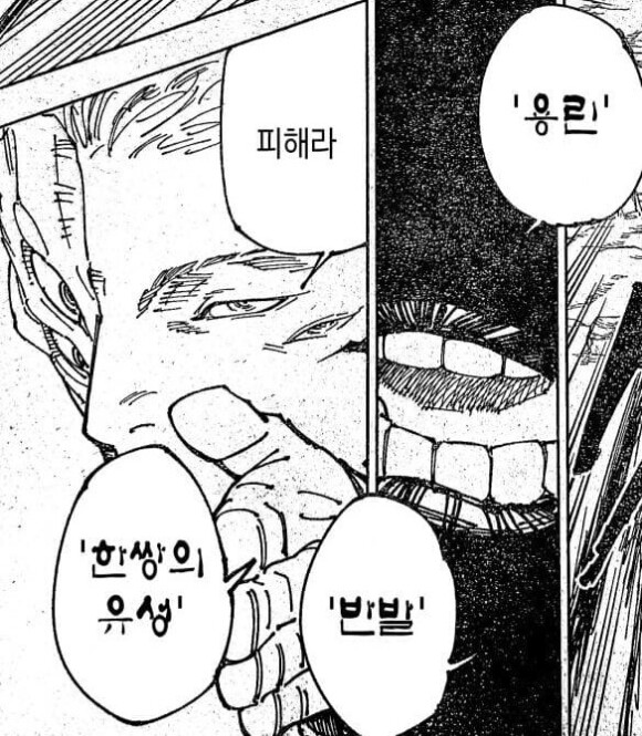 "용린(龍鱗), 반발(反発), 한 쌍의 유성. 피해라, 해(解)"