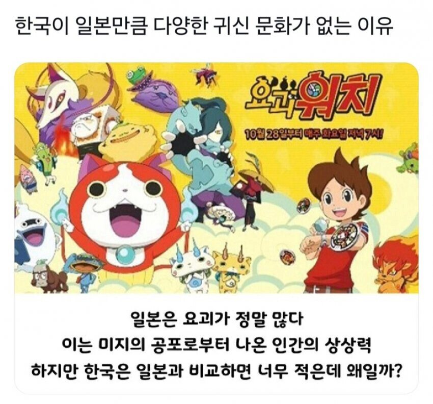 한국이 일본에 비해서 네임드 요괴가 별로 없는 이유