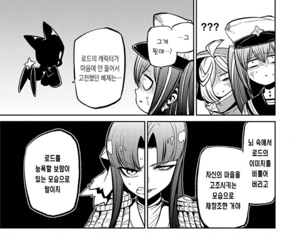 원래 악의 집단 총수 자리에 앉아있던 사람은 세계 정복을 목표로 하고 있었지만, 그걸 위해서 마법소녀를 사냥하자 본인이 정말 좋아하는 괴롭히는 보람이 있는 마법소녀를 없앴다는 이유로 총수를 끌어내리고 본인이 악의 조직의 리더가 된 상당히 정신 나간 년