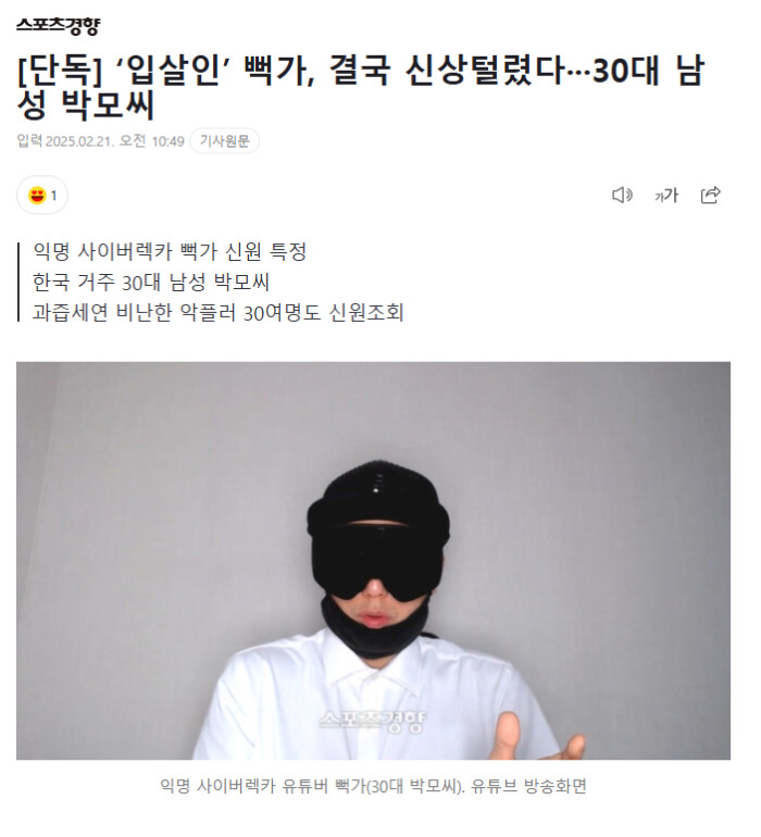 [단독] ‘입살인’ 뻑가, 결국 신상털렸다···30대 남성 박모씨