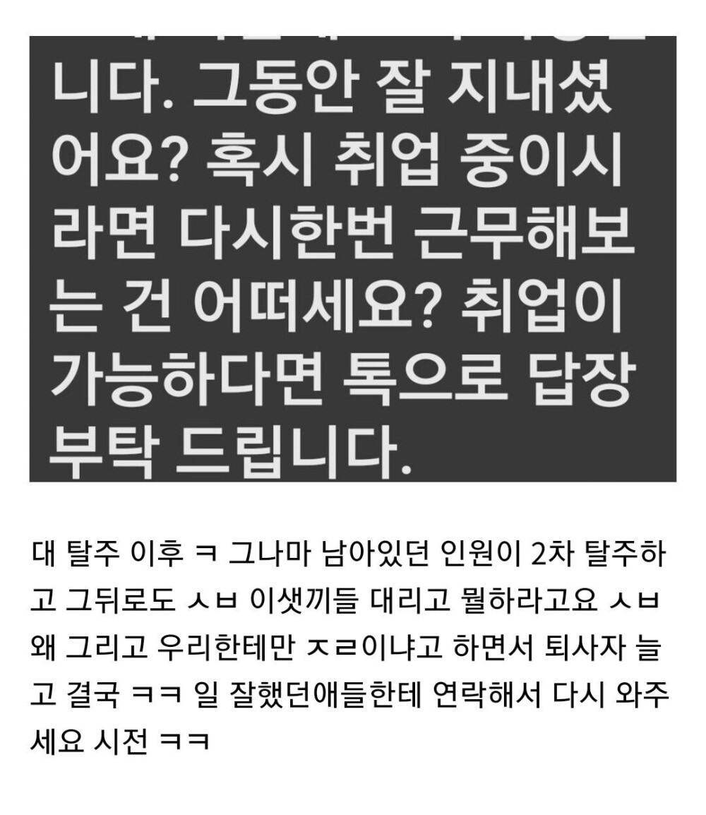 퇴사한 회사에서 온 문자...