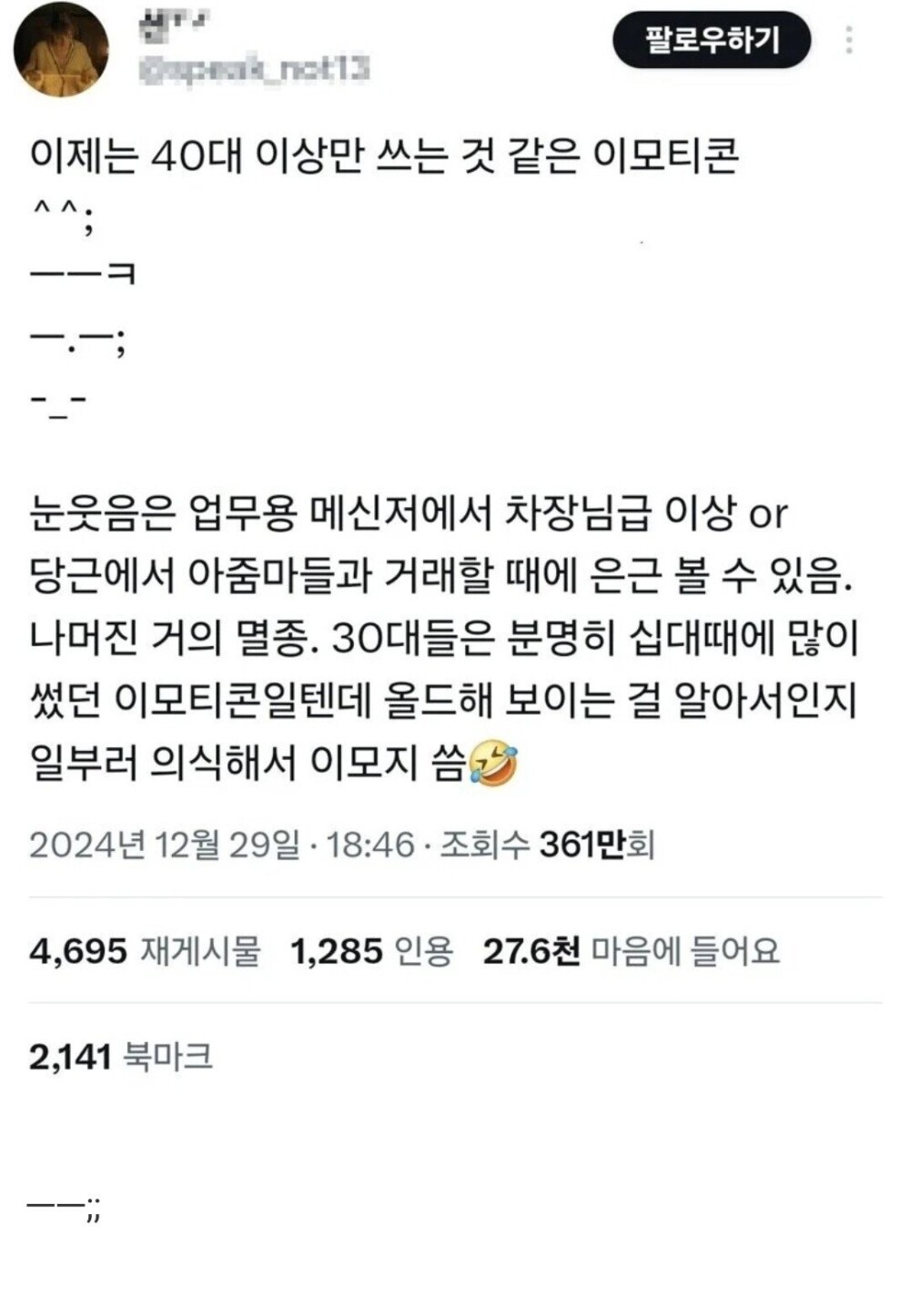 이제는 40대 이상만 쓰는 것 같은 이모티콘