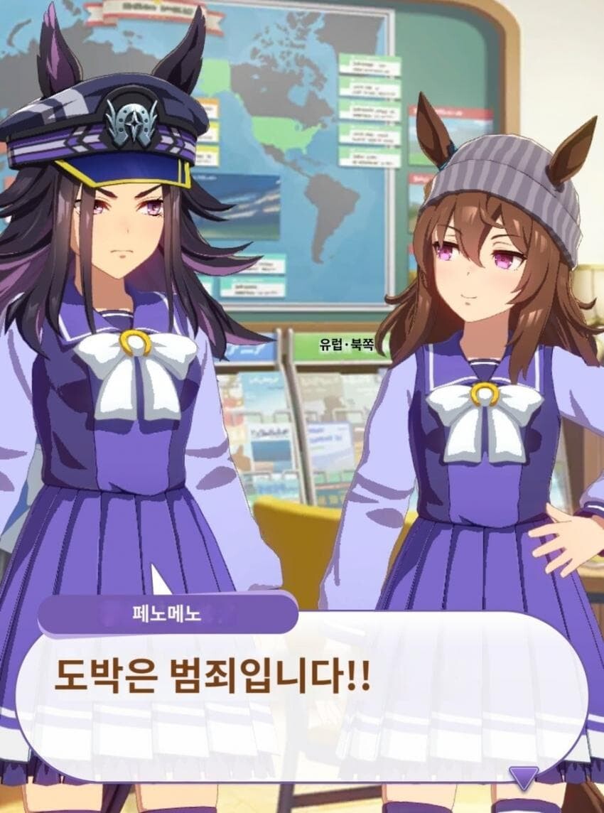 경찰관 컨셉의 신캐 페노메노 학교에서는 선도의원회 소속으로 교칙위반이나 불량학생들을 관리하고 휴일이나 남는 시간에는 봉사활동 다니는 성실한 컨셉 그리고 이번에 불량학생 말딸은 단속하는 장면이 게임에 삽입이 되었는데... ? 다들 알다시피 말딸은 경마 모에화 작품이 맞다.