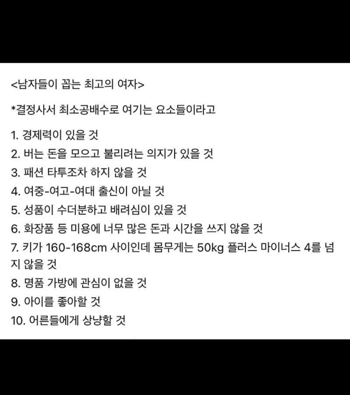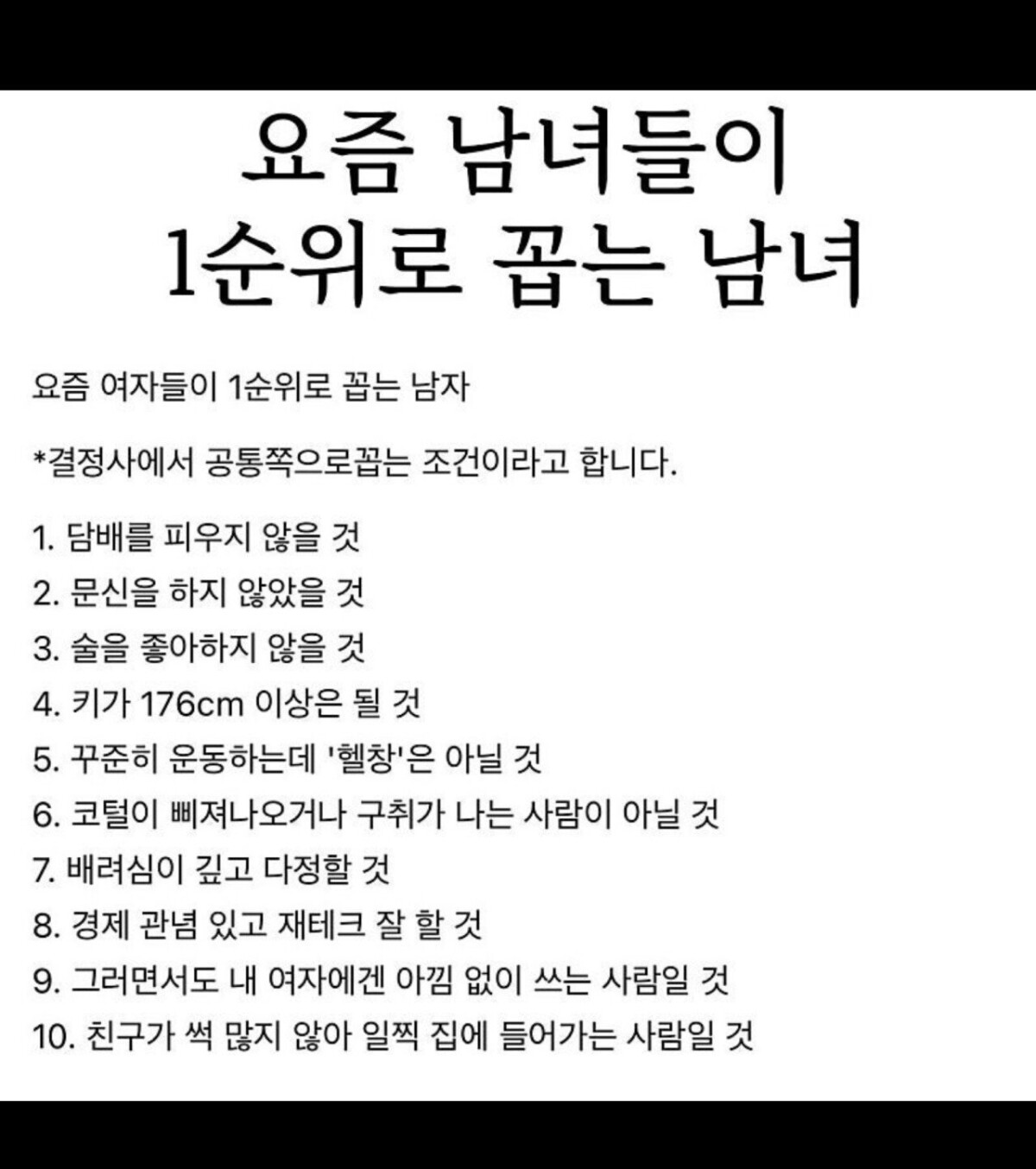 요즘 남녀가 바라는 이성조건 TOP10