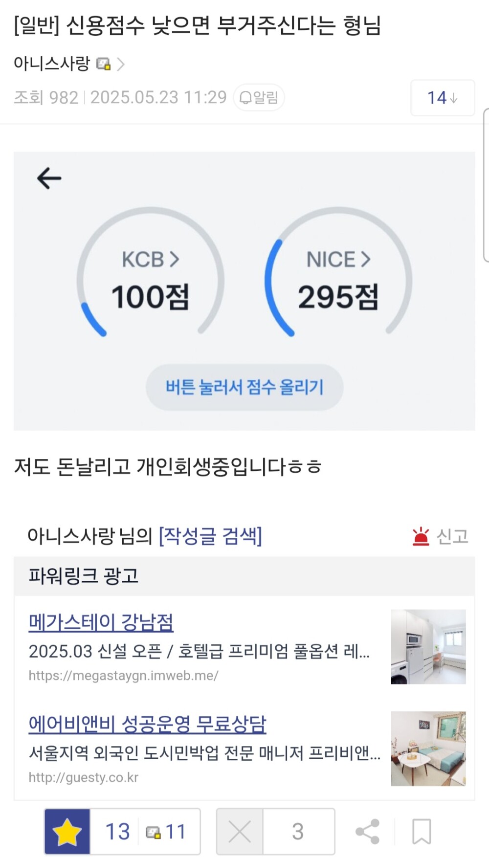 본인보다 신용점수가 낮은 사람에게 버거를 주겠다던 디씨인...