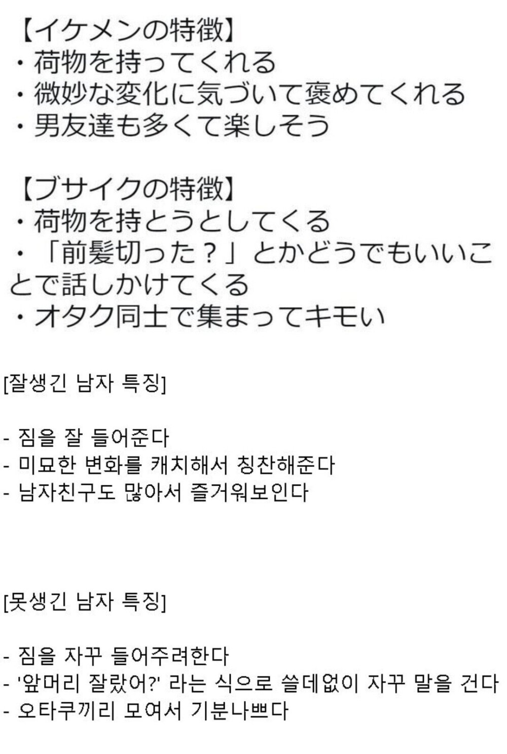 일본에서 말하는 잘생긴 남자의 특징