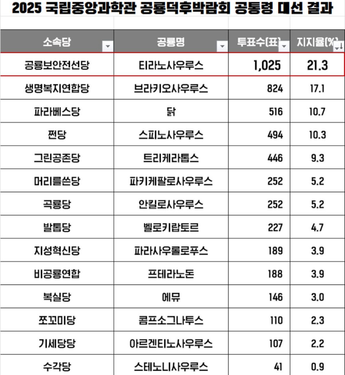스피노사우르스 후보가 네 발로 기어다녔다는 사생활 이슈로 닭보다도 표 못받았다는 사실이 충격적임