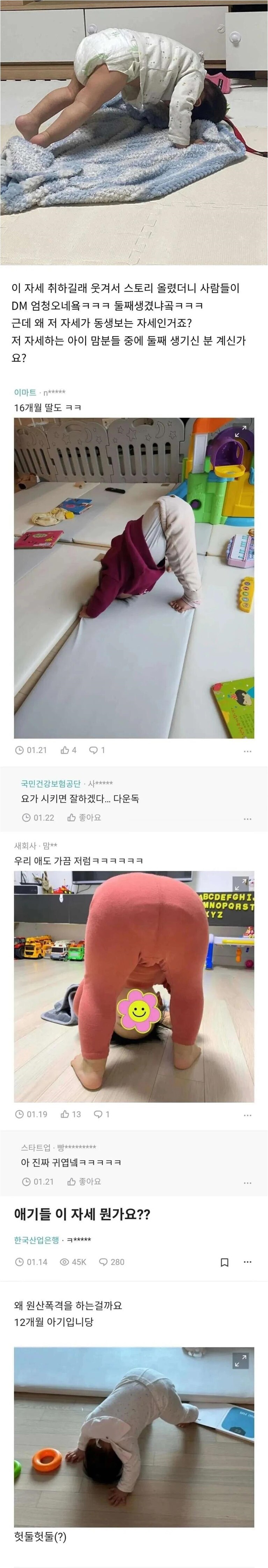 특정 나이대 아기들한테 관찰된다는 그 자세 ㅋㅋ