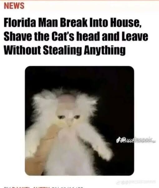 도둑이 집에 침입해서 아무것도 안훔치고 고양이 머리만 밀고 갔다 함