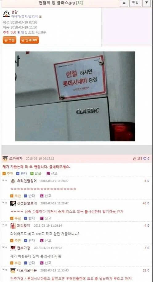 헌혈하면 롯데시네마를 드려요!!!